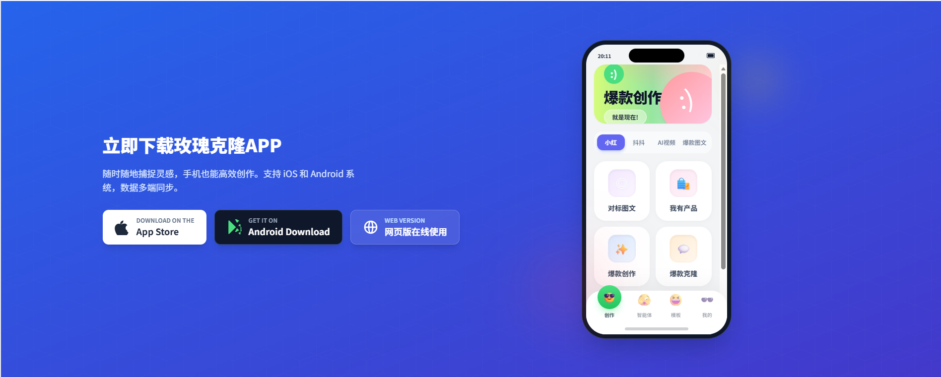 玫瑰克隆工具是一款专注于小红书爆款笔记创作,提供玫瑰克隆文案生成、爆款图文克隆、视频去重等核心功能的爆款创作神器
